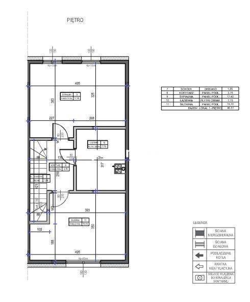 – Ściany działowe z paneli Ytong o grubości 10 cm, zbrojone.