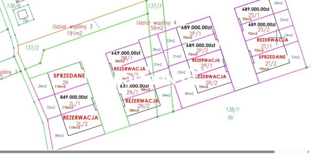 – 2T/2 – 91,89 m, działka 133 m – sprzedane