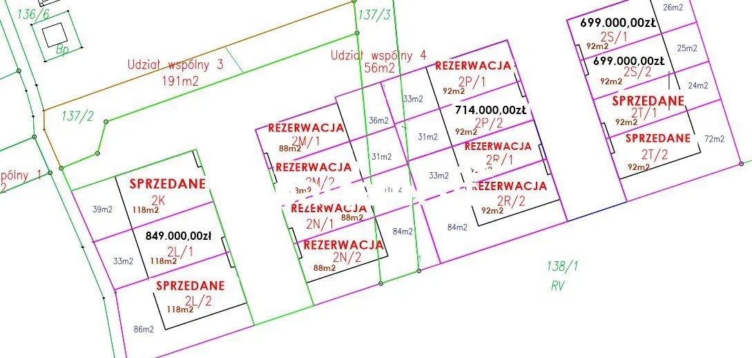 2R/1 – 91,89m2, —- powierzchnia działki 91mkw – rezerwacja